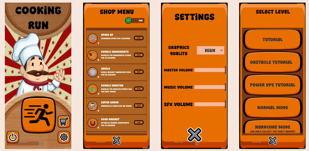 Cooking Run is a third-person perspective endless runner cooking game that aims to raise players’ awareness about the importance of healthy food choices. Player play as a chef and their objective is to gather the correct ingredients based on the food order’s recipes, while avoiding unhealthy food which are obstacles that appear along the market path.